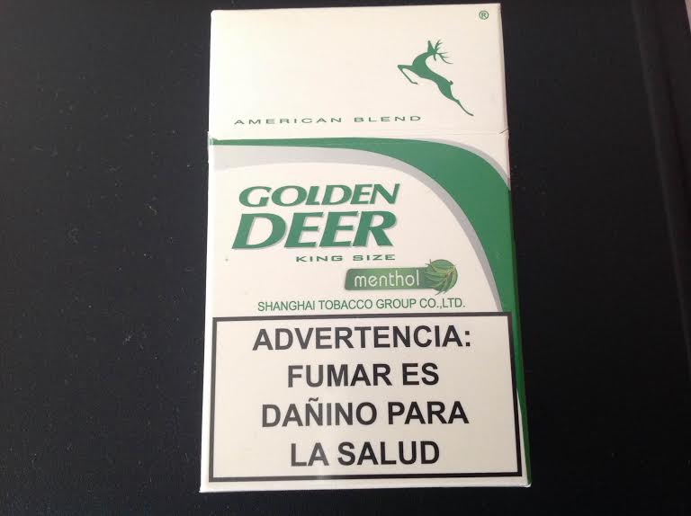 Golden Deer, de los cigarrillos chinos más vendidos. Consta la advertencia sobre el peligro de fumar.
